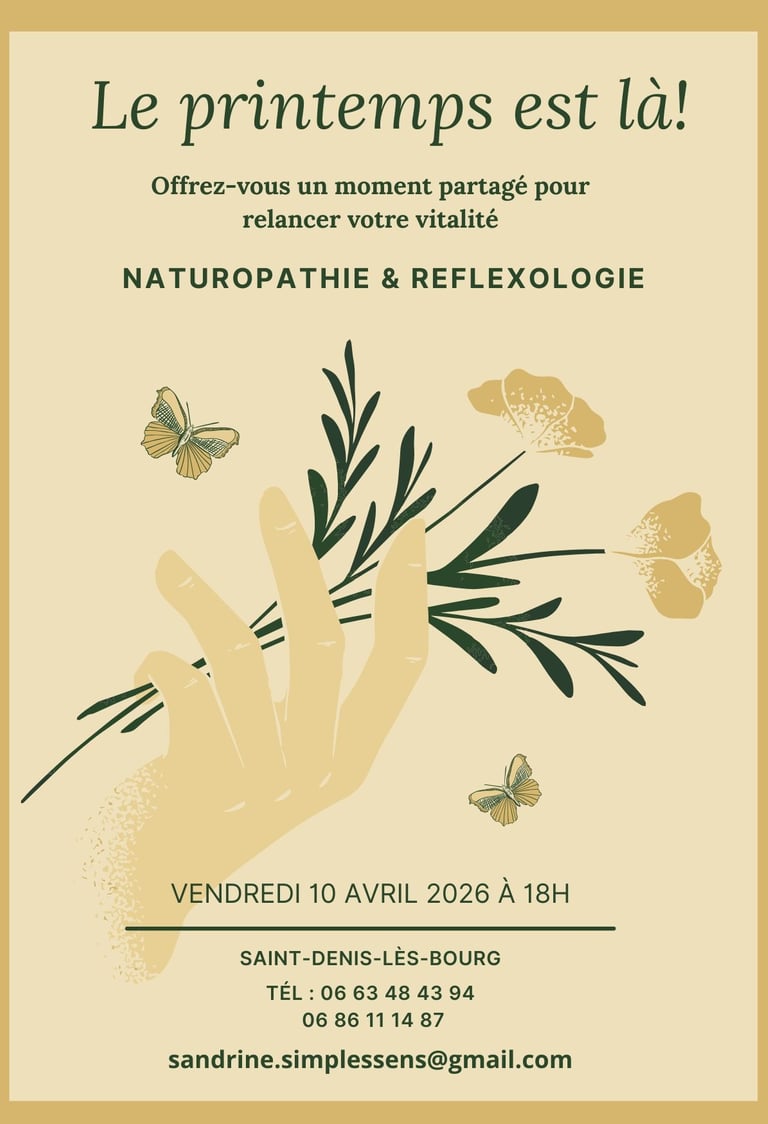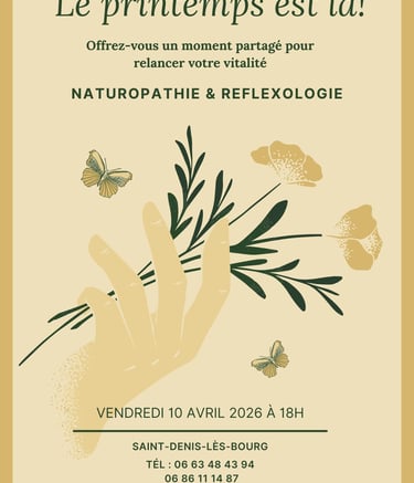 🌻Sandrine, praticienne en herboristerie, naturopathe et Lionel réflexologue, vous accueillent le vendredi 10 avril 2026 à Saint-Denis-lès-Bourg, pour vous conseiller, vous apporter des solutions et vous aider à rééquilibrer votre organisme.