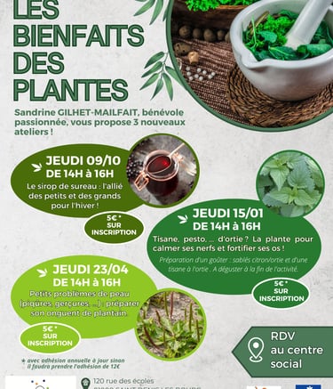 Vous souhaitez découvrir les plantes médicinales, les pratiques d'herboristerie, la naturopathie, je vous propose différents ateliers sur des thématiques qui peuvent être déclinés à la carte que ce soit pour les grands ou les petits. Exemples :